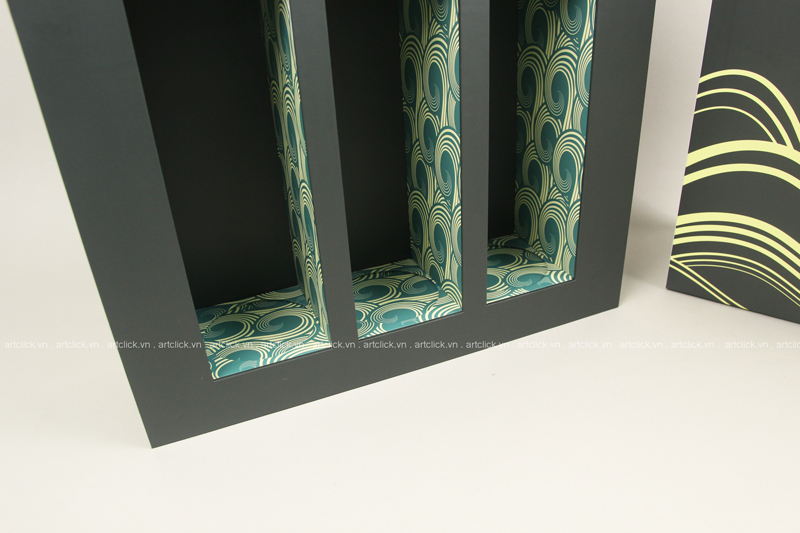 ?i?m ??c bi?t c?a thi?t k? này là ph?n gáy có th? m? hoàn toàn, t?o nên m?t b?n tr?i r?ng ?n t??ng, lý t??ng ?? trình bày các hình ?nh, ?? h?a ho?c chi ti?t trang trí ??c bi?t. Bên trong, chi?c h?p có các khay ???c khoét l? và chia ng?n khoa h?c, tùy ch?nh theo kích th??c và hình dáng c?a t?ng s?n ph?m. M?i s?n ph?m ???c ??t g?n gàng, tránh xô l?ch và va ??p, giúp h?i ??ng ch?m ?i?m d? dàng quan sát và ?ánh giá t?ng th?.