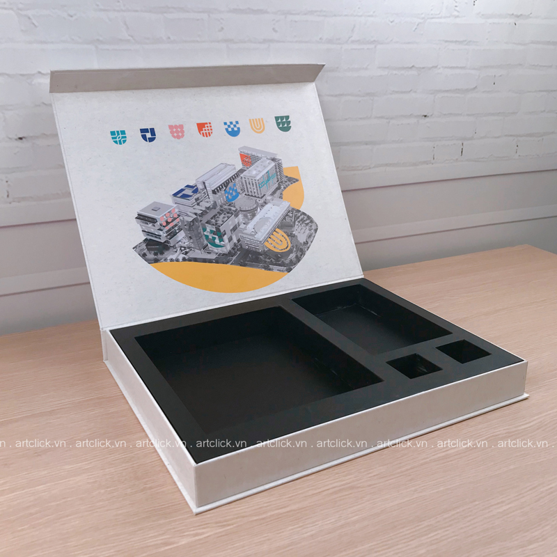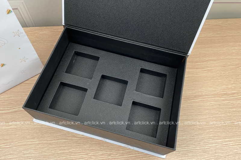 H?p ?? ĂĄn t?t nghi?p lĂ  m?t gi?i phĂĄp trĂŹnh bĂ y chuyĂȘn nghi?p, ???c thi?t k? d??i d?ng h?p nam chĂąm v?i c? ch? ?Ăłng m? ch?c ch?n vĂ  tinh t?. BĂȘn trong, cĂĄc khay ???c khoĂ©t l? vĂ  chia ng?n khoa h?c, tĂčy ch?nh theo kĂ­ch th??c vĂ  hĂŹnh dĂĄng c?a t?ng s?n ph?m nh?. M?i s?n ph?m ???c ??t g?n gĂ ng, trĂĄnh xĂŽ l?ch vĂ  va ??p, t?o ?i?u ki?n thu?n l?i nh?t ?? h?i ??ng ch?m ?i?m ?ĂĄnh giĂĄ. Chi?c h?p khĂŽng ch? lĂ  v?t ch?a mĂ  cĂČn lĂ  c?u n?i th? hi?n s? t? m? vĂ  ??u t? c?a sinh viĂȘn dĂ nh cho thĂ nh qu? h?c t?p c?a mĂŹnh.