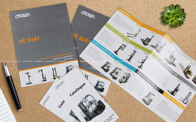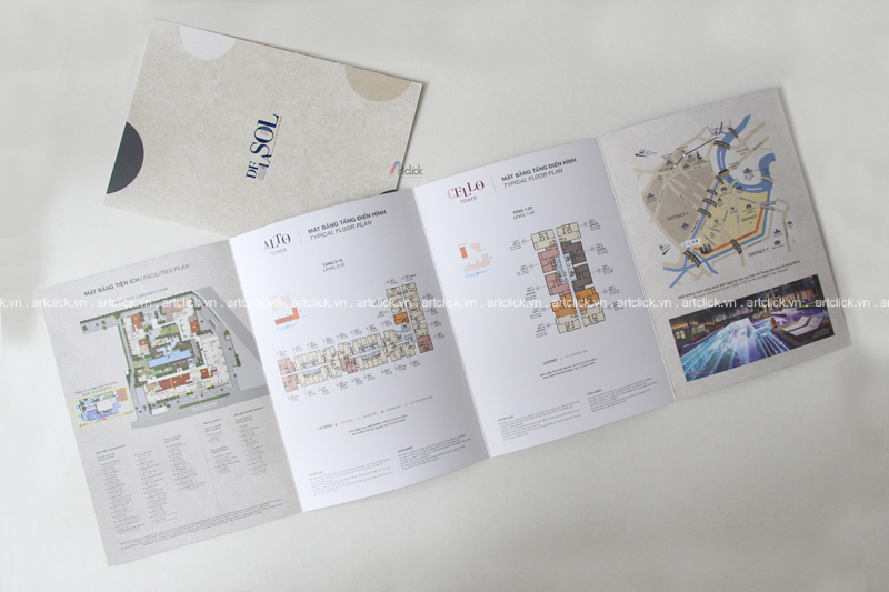 Brochure gấp 4 gồm 8 mặt nội dung, được in trên tờ giấy 2 mặt, cấn gấp làm 4, thêm được nhiều nội dung hơn. Có thể làm thêm phần bìa cứng cho brochure thêm phần chắc chắn và sang trọng. Xem chi tiết