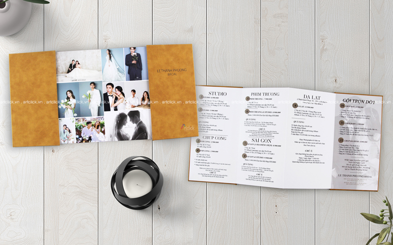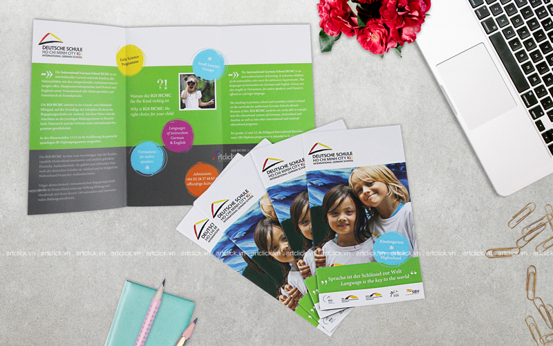 Brochure gấp 3 gồm 6 mặt nội dung, được in trên tờ giấy 2 mặt, cấn gấp làm 3. Doanh nghiệp có thể thiết kế nội dung có sự liên kết hoặc rời rạc mỗi phần là 1 nội dung khác nhau. Xem chi tiết