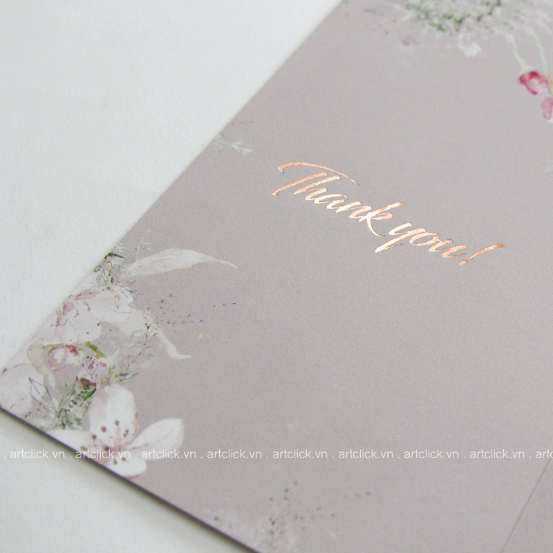 - Ép kim màu: Đa dạng màu sắc, tạo điểm nhấn độc đáo cho thiệp.