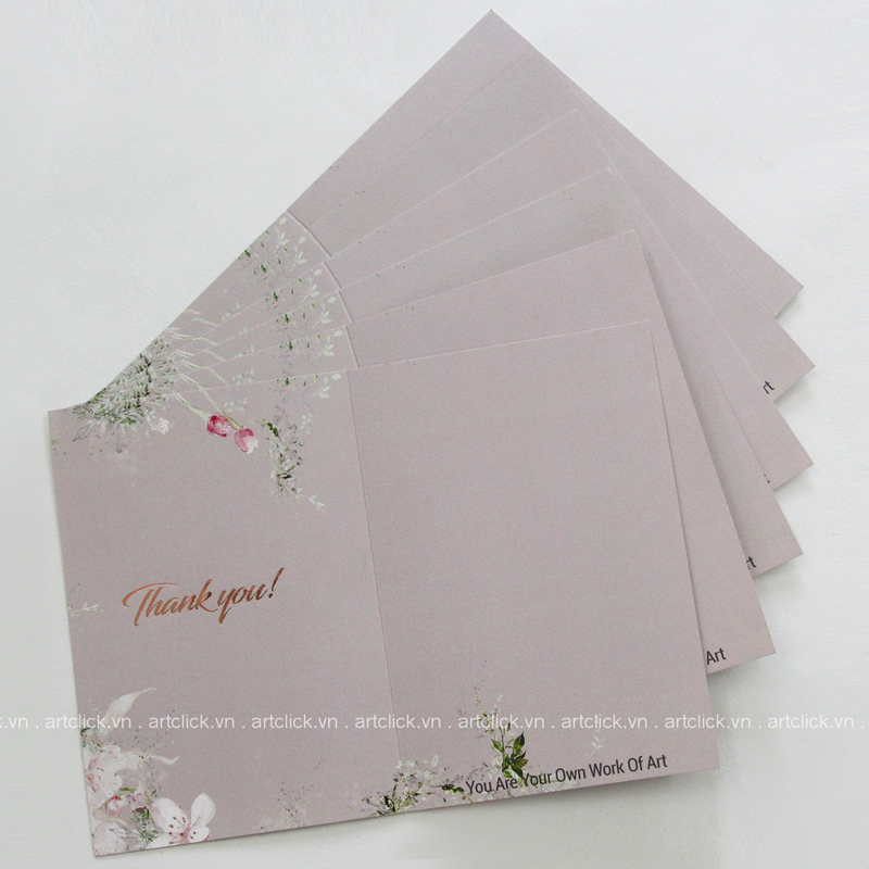 Giấy mỹ thuật là loại giấy cao cấp, được sản xuất với quy trình đặc biệt, mang đến những đặc tính ưu việt về màu sắc, độ dày, vân giấy, và khả năng tương tác với các kỹ thuật in ấn. Thiệp cảm ơn in trên giấy mỹ thuật không chỉ đẹp mắt mà còn tạo cảm giác sang trọng, quý phái khi chạm vào.