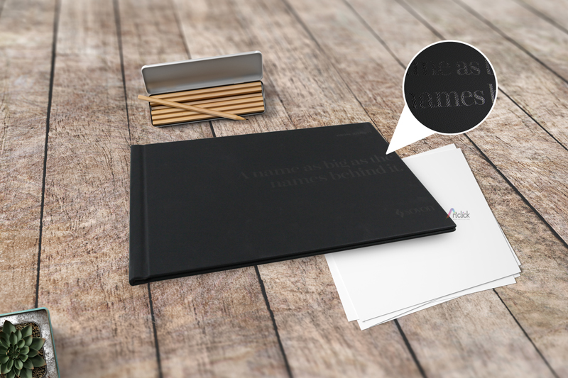 Catalog dạng tạp chí, bìa da cứng, hiệu ứng in UV đen bóng lạ mắt