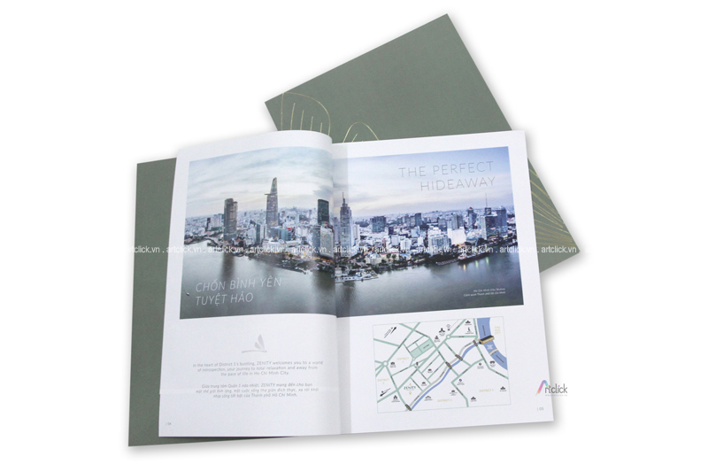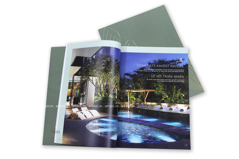 Với dạng mở cong như cuốn tạp chí thông thường, chất liệu bìa mềm nhẹ nhàng, tinh tế. Có thể in trên nhiều chất liệu giấy từ tiêu chuẩn tới mỹ thuật sang trọng. Artclick cung cấp dịch vụ thiết kế và in ấn chuyên nghiệp.