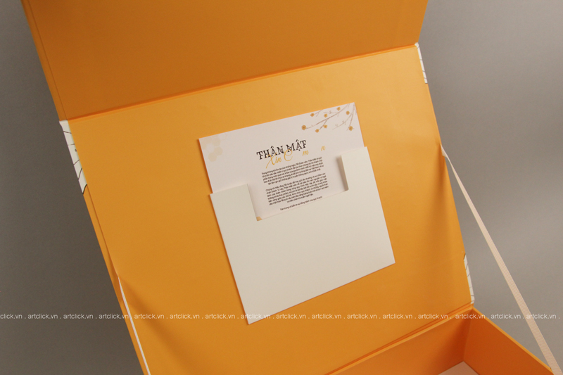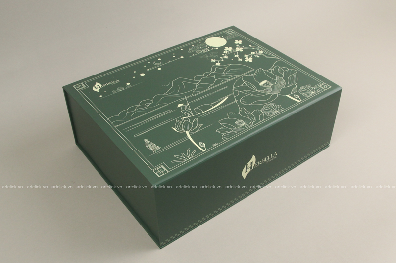 Hộp nam châm NGƯ NGUYỆT, khoét lỗ đựng vừa 4 sản phẩm hộp gấp xếp bên trong. Xem video sản phẩm