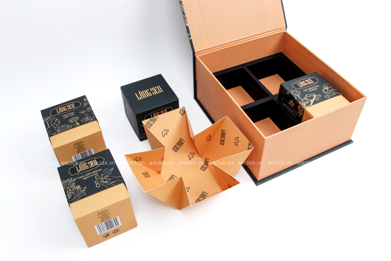 Với Artclick, mọi ý tưởng về hộp giấy thiết kế phức tạp, từ hộp nam châm cứng cáp bên ngoài đến các hộp giấy gấp xếp mỏng nhẹ bên trong, đều có thể trở thành hiện thực với chất lượng và độ hoàn thiện cao nhất.
