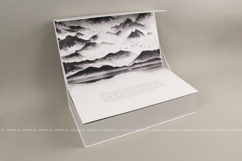 Đây là một sản phẩm độc đáo, được tạo ra từ sự kết hợp giữa ý tưởng sáng tạo của sinh viên và kỹ thuật in ấn, gia công chuyên nghiệp từ Artclick. Chiếc hộp này có cấu trúc đặc biệt với nắp đậy bên trong, cho phép sinh viên tự do sáng tạo để trình bày bài đồ án tốt nghiệp.