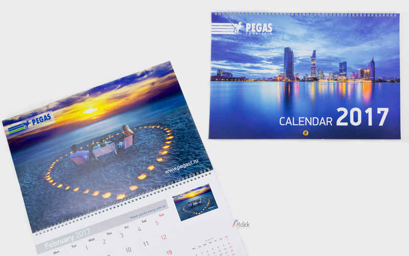 Lịch tường doanh nghiệp Pegas 2017. Với khổ trải lớn hơn, doanh nghiệp có thể thêm nhiều thông tin và gửi gắm nhiều thông điệp tới khách hàng hơn.