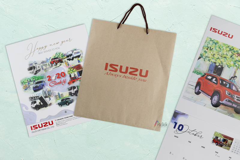 Lịch treo tường doanh nghiệp ISUZU 2020 – bấm kim giữa size 30×30 (khổ treo 30×60) kèm túi giấy