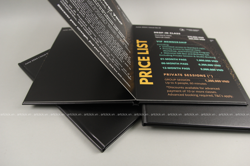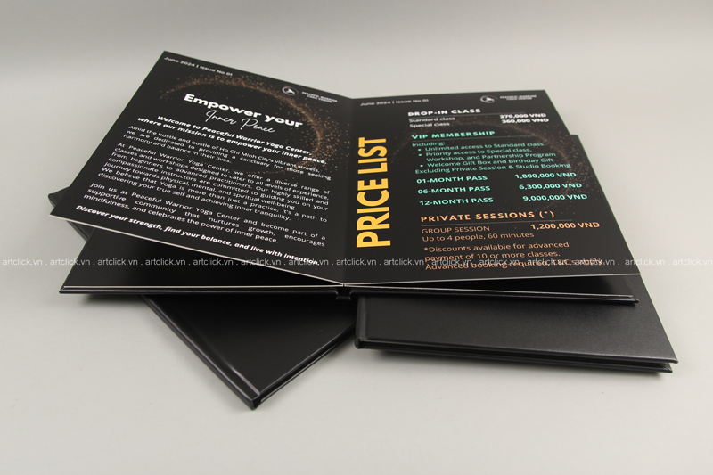 Một mẫu menu đẹp đơn giản không chỉ là một ấn phẩm thông tin mà còn là một phần không thể thiếu trong trải nghiệm tổng thể tại phòng tập yoga của bạn. Bằng cách tập trung vào dạng mở phẳng, giấy dày, in ấn chất lượng cao và tận dụng lợi thế in số lượng ít từ Artclick, bạn hoàn toàn có thể sở hữu những cuốn menu tinh tế, chuyên nghiệp, góp phần nâng tầm thương hiệu và thu hút khách hàng.