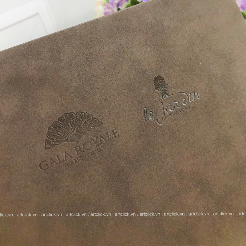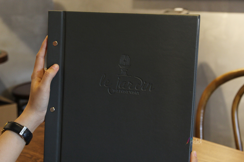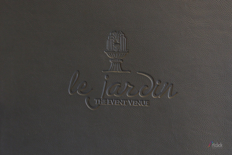 Menu Le Jardin – The event venue – bìa bọc da – in logo chìm