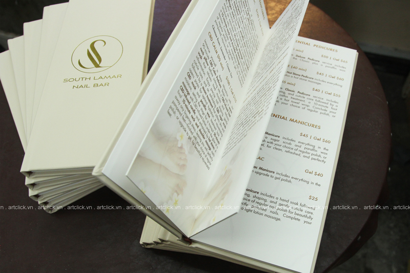 Menu tiệm nail ép kim cao cấp, in ấn số lượng ít. Xem chi tiết