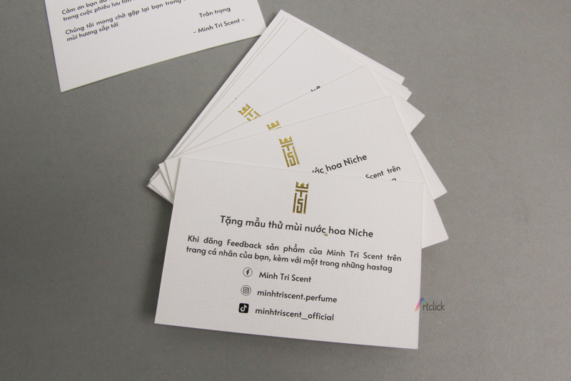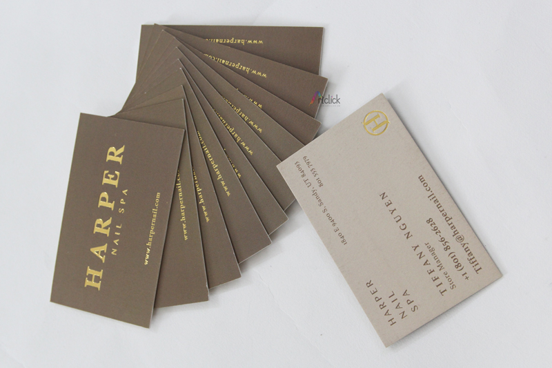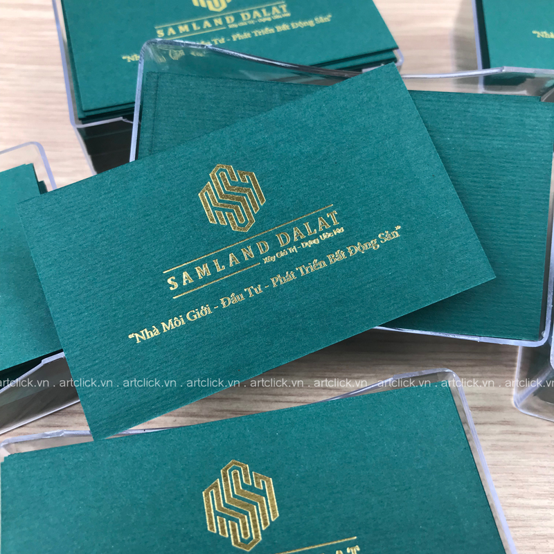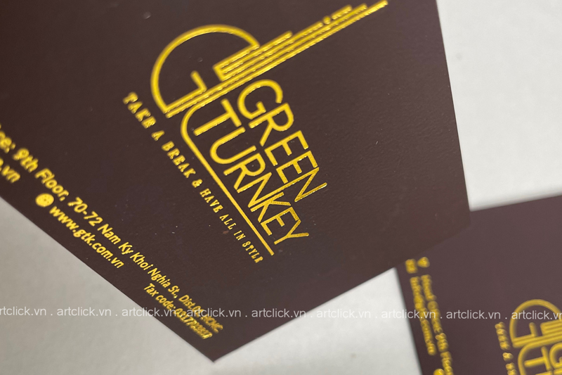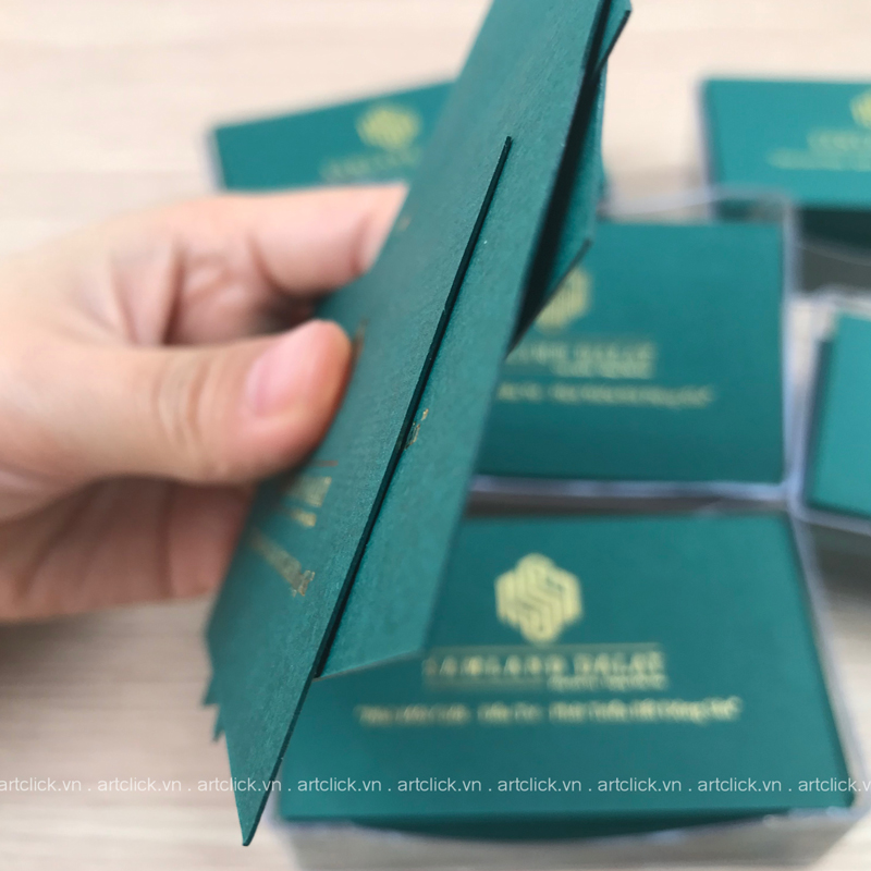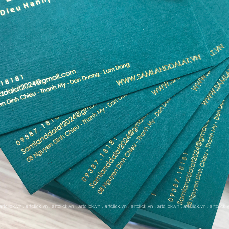 Ép kim vàng hay bạc giúp danh thiếp name card sang trọng, bắt mắt hơn. Từ đó gây ấn tượng với người đối diện hơn. Có thể ép kim logo hoặc tên để tạo điểm nhấn cho danh thiếp. Artclick cung cấp dịch vụ thiết kế và in ấn chuyên nghiệp.