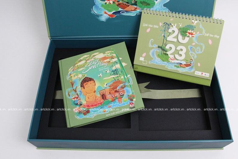 Bộ sản phẩm bao gồm photobook, lịch, hộp chia khay