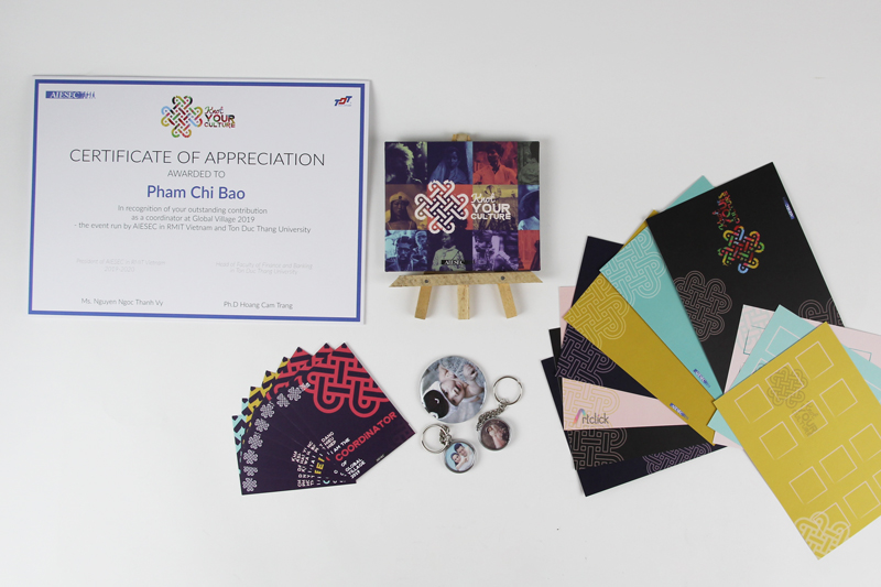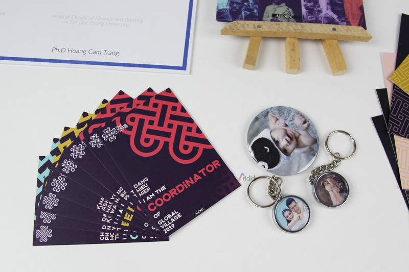 (bao gồm: giấy chứng nhận, post card, canvas để bàn, móc khóa để bàn, móc khóa treo cặp,..)