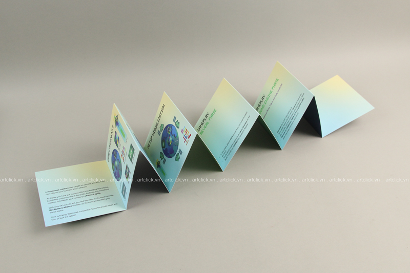 Với nhiều hình thức gấp khác nhau, từ gấp đôi, gấp ba, gấp zic-zac hay nhiều nếp gấp phức tạp hơn, bạn có thể biến brochure thành một cuốn hồ sơ đồ án cô đọng nhưng đầy đủ. Sản phẩm này không chỉ giúp sắp xếp thông tin logic, từ tổng quan đến chi tiết, mà còn thể hiện sự tỉ mỉ trong khâu thiết kế và in ấn. Một chiếc brochure được in ấn và gia công chất lượng cao sẽ tạo ấn tượng mạnh mẽ, giúp bài đồ án của bạn trở nên chuyên nghiệp và thuyết phục hơn.