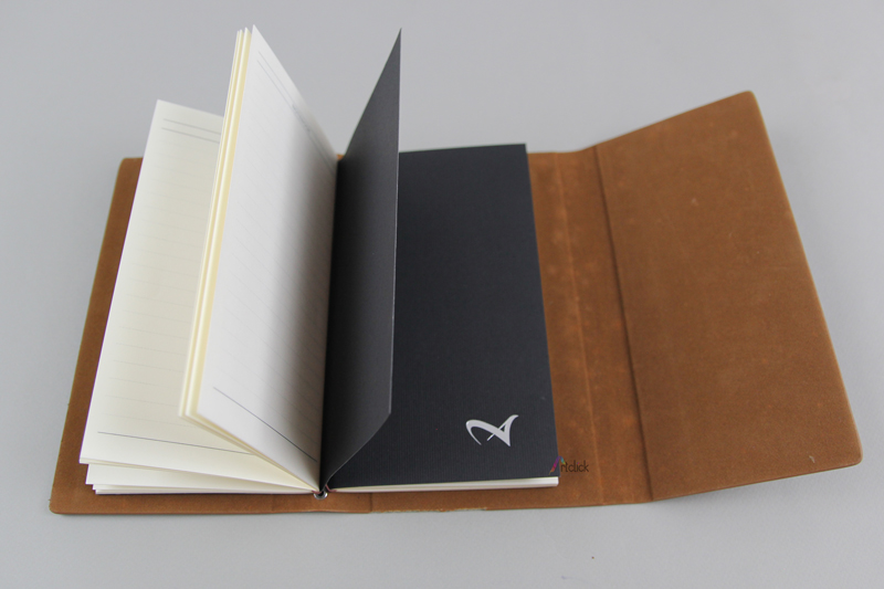 • Sổ tay bìa bọc da, có dây, ruột sổ bấm kim chắc chắn.