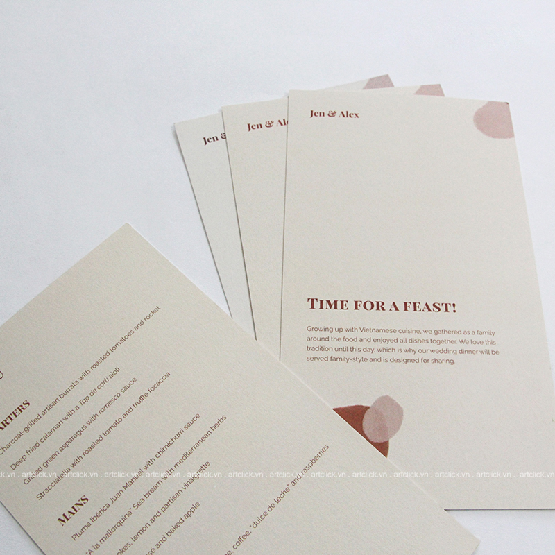 Công ty In ấn Artclick là đơn vị uy tín hàng đầu trong lĩnh vực in ấn menu 2 mặt. Với đội ngũ nhân viên chuyên nghiệp, giàu kinh nghiệm và hệ thống máy móc hiện đại, chúng tôi cam kết mang đến cho khách hàng những sản phẩm chất lượng cao, đáp ứng mọi yêu cầu và mong đợi.