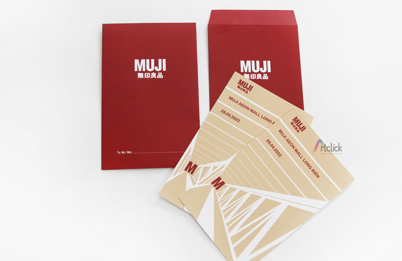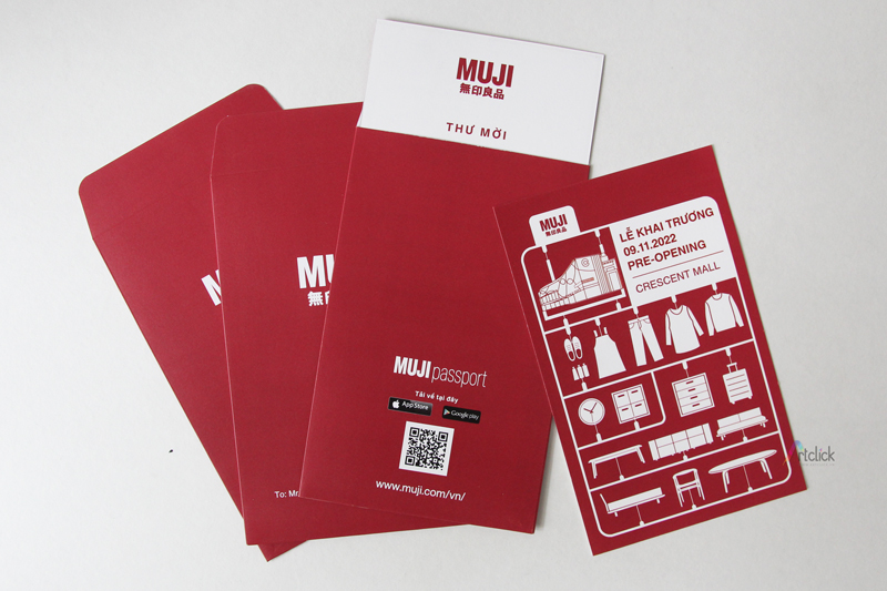 Thiệp mời khai trương, pre-opening MUJI – thiệp đơn giản in 2 mặt kèm bao thư
