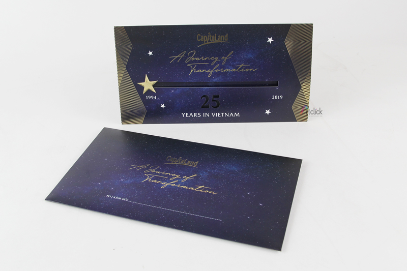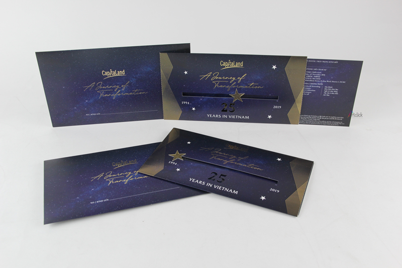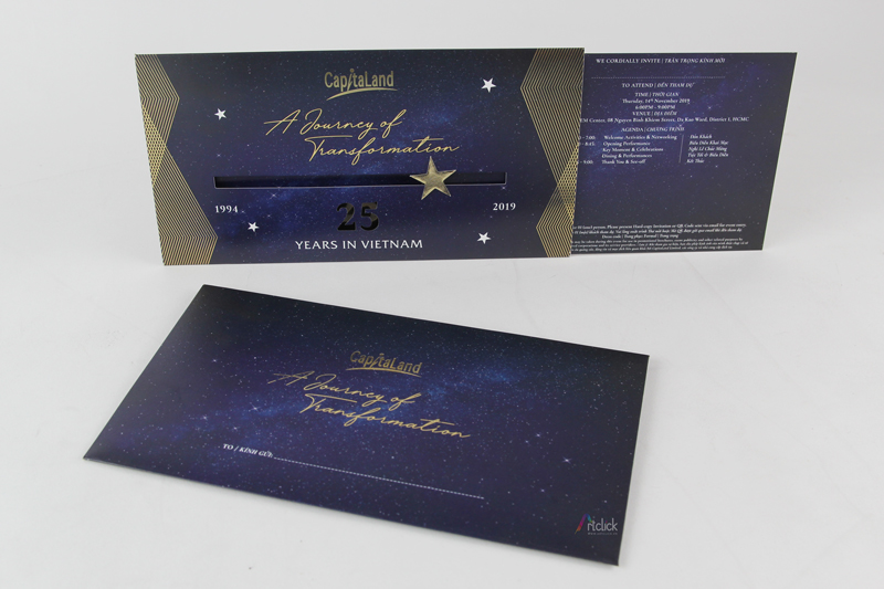 Thiệp mời tham dự sự kiện Capitaland – ép kim sang trọng, thiệp rút tạo điểm nhấn đặc biệt