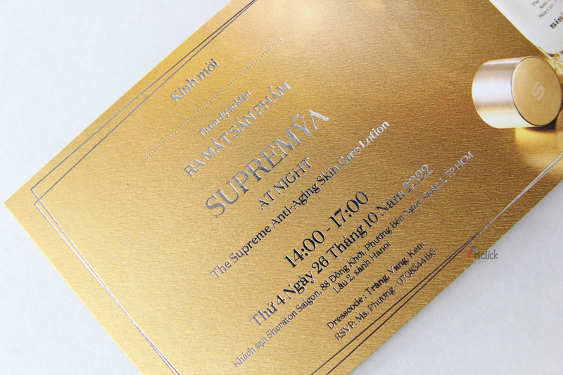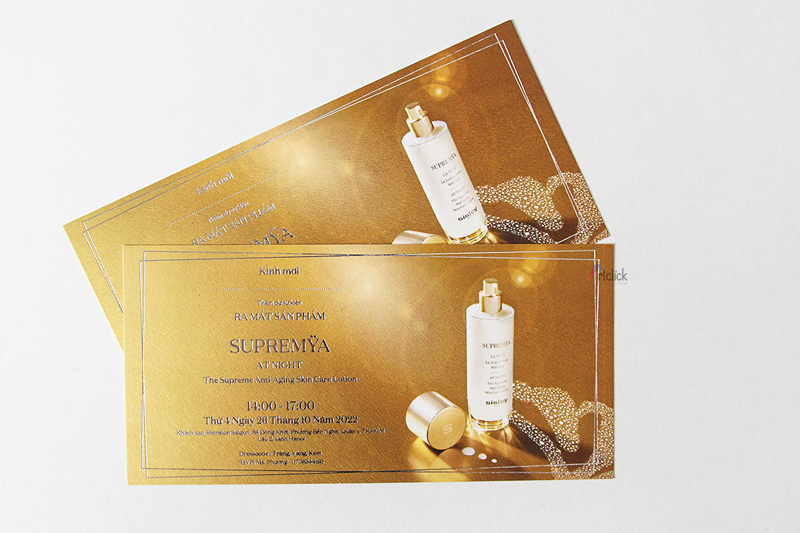 Thiệp mời sự kiện ra mắt sản phẩm SUPREMYA – ép kim sang trọng, đẳng cấp