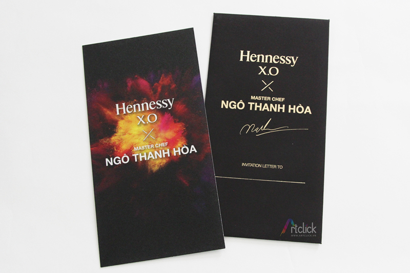 Thiệp Introducing – size 24×8.5, 2 mặt, ép kim + Bao thư dập chìm 2 mặt, ép kim logo nhỏ
