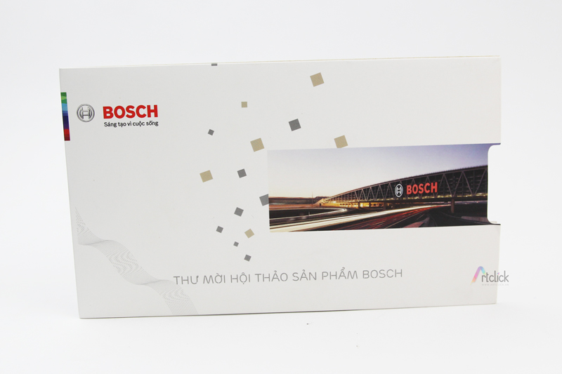 Thư mời hội thảo sản phẩm BOSCH – dạng thiệp kèm bao thư rút đơn giản