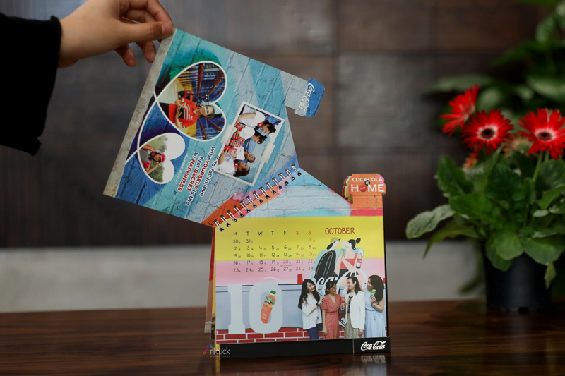“Coca Cola is HOME” là chuỗi chủ đề thiết kế và in lịch năm nay, cuốn lịch được tạo hình như một ngôi nhà ấm cúng và hạnh phúc. Bên trong là hình ảnh về doanh nghiệp, nhân viên, các hoạt động thiện nguyện, du lịch và những dự án thành công trong suốt 1 năm vừa rồi. Món quà ý nghĩa và tạo động lực cho nhân viên.