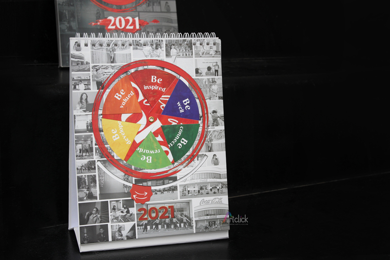Ý tưởng lấy logo Life at Coke làm vòng xoay ở trang bìa hiện ra các giá trị đặc biệt mà công ty muốn truyền tải tới cho nhân viên đã tạo nên sự hứng khởi cho họ khi lần đầu tiên cầm quyển lịch trên tay. Một thành công của phòng nhân sự Coca cola nhờ vào phép biến hoá thần thông sáng tạo thần tốc của team thiết kế và sản xuất của Artclick.