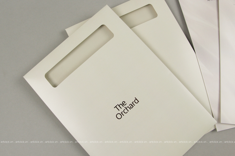 Chất liệu giấy cao cấp được lựa chọn cho ruột thiệp (loại giấy mỹ thuật có bề mặt mịn, ăn mực tốt) không chỉ mang lại cảm giác dày dặn, sang trọng mà còn giúp các thông tin, hình ảnh về The Orchard trở nên sống động và chân thực hơn.
